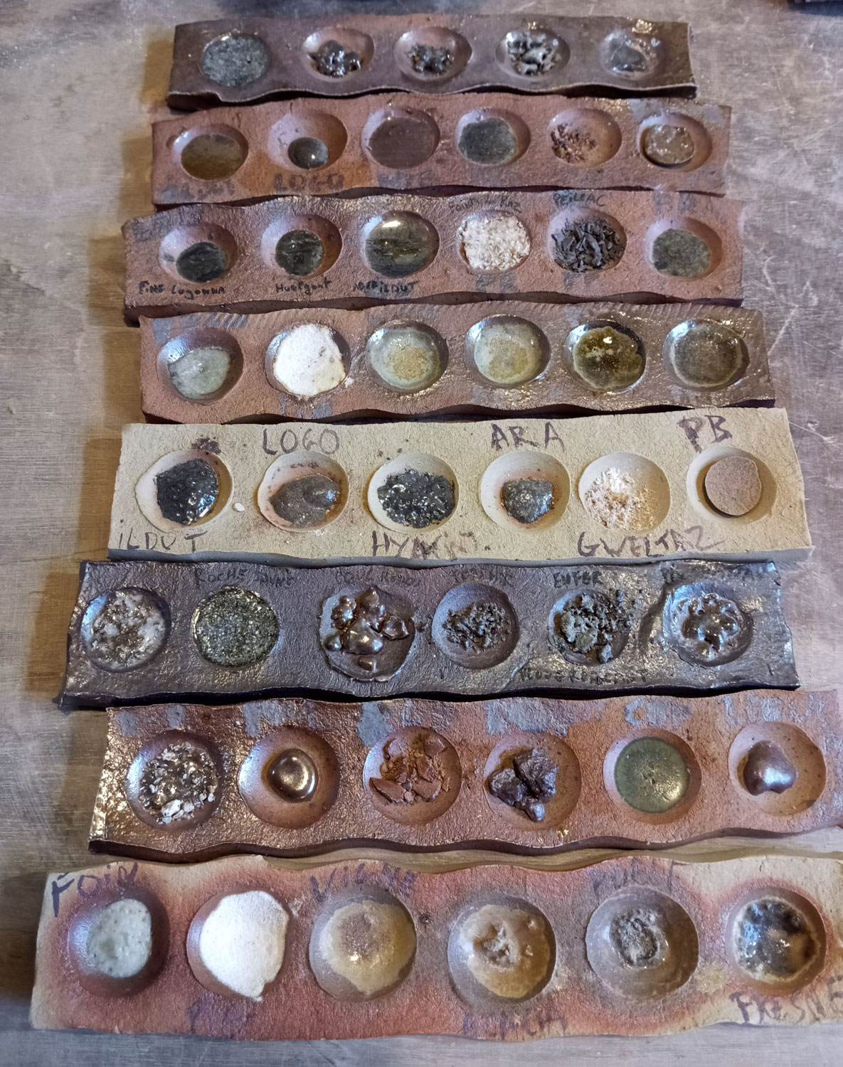 Voici 4 familles d’émaux, d’autres sont bien sûr visibles à l’expo de l’atelier (émaux de cendres ).